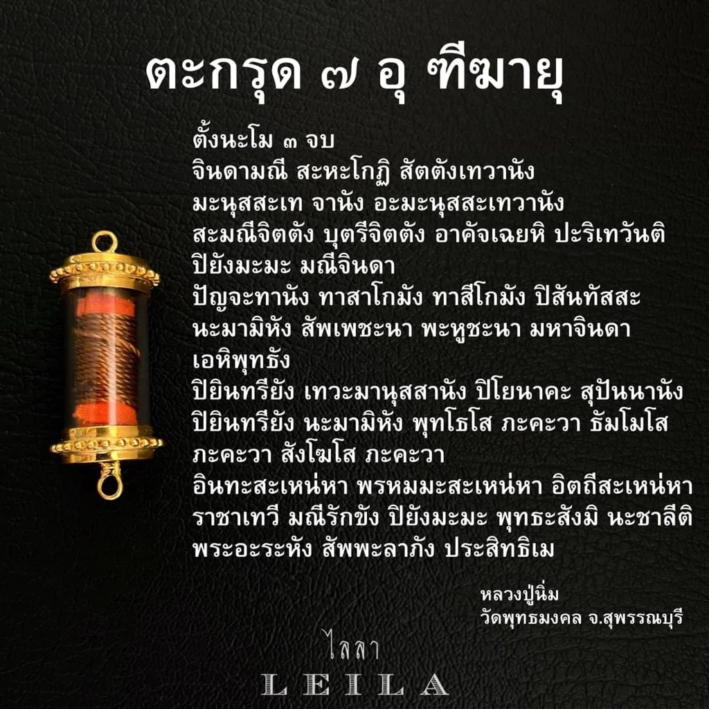 This model is the last model, the heart is removed to create, the heart is molded, the core is covered with lead to absorb a lot of Buddha power, silver sheet is placed to distribute Buddha power completely, covering the outside, weave black rope over the robe. Luang Pu said that when carrying the amulet, it should be carried in the front higher than the waist. If keeping it at the shop, worship it in front of the shop, pray that this amulet will attract customers, attract great fortune, worship it at home, attract fortune, enter a wonderful war campaign, it is a great Jangang, a great calm to all people, prevent all dangers, great mercy, has a charming power, those who carry it compare us to a picture of gold wrapped around it.